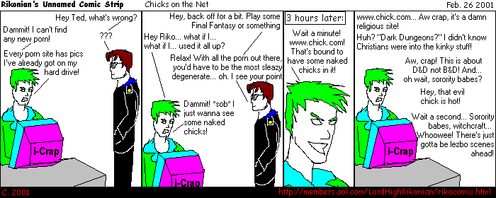 Warning: These comics will sometimes (often if you're lucky) feature nudity, sex, violence, profanity, and other cool stuff.