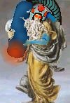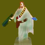 | The Virgin Mary is flying high with her jetpack and wing-robe. And with her light up laser cannons, this is one virgin that knows how to handle action! | |