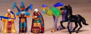 | The Three Wise Men, with their bionic camel and ion pulse weapons are ready for most threats. But when evil proves too big to handle, they combine to form Wisemenator! | ||