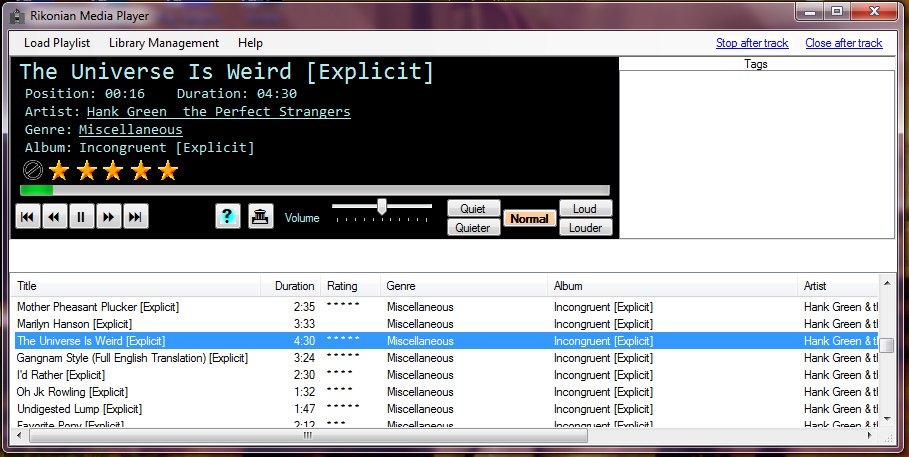 Set individual volume overrides for those annoying tracks that are too quiet or too loud.