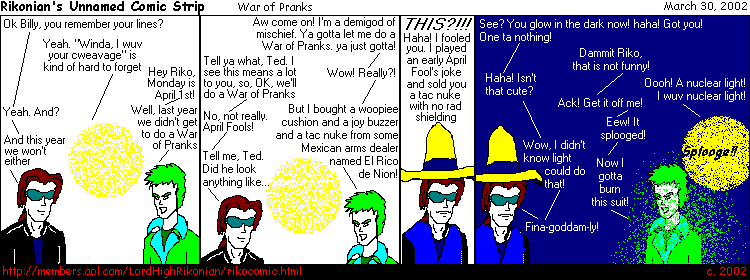 80's A. G. Ent activism adverts Aegir Aflac Al Gore Alan Rickman aliens alternate universe Anderson Angry Birds anime Anton La Vey Apollo Ares asplode Bad Andy Batman BDSM Billy blood blood hoses Bob Ross bodily fluids books bootleg brain brains Buffy butts cancellation candy cannibalism Captain  Riko Caruso Cheers Cheney Chi-Potle Chick-Fil-A Chris Dodd Christian Bale CIA cleanse the city Colin Firth comics Community computers conspiracy controversy costume costumes Craig Ferguson crash creepy stories crime Cthulhu customer service cute nonhuman dad jokes Dark Pantheon death Death Note Debug Demoncloake detective Deus Ex DGK dimensions dinosaurs Dispy Dogma Donald Trump doom doppelganger Dora Kent Dr. Jansen Dr. Who dreams Droid drugs Dubya eco El Rico de Nion elf engineering England eye carumba! eye lasers fan fiction farts FIFI filler Finland fire firefly flash forward food foot freaks French Maid Drone Friday the 13th fundies funky science funny hat furries Game of Thrones game show gay rights gearing up ghost gimp ginormous stuff Giorgio Tsoukalos Gllllyxxngragcht goat gods goth gross Gulliani guns hair hand to hand Hannibal hat haunted Hayden Panettiere HD 10180 heads Hellstar Remina Heroes Hitman holidays home base Hostess fruit pies hypertime injury internet iPad Ivan Commienov Jack Jack Chick Jim Cramer John Green John Lennon Jugularnaut Junji Ito Katy Perry kersplat Kevin Bacon Kraken lazy Lego lesbians Lincoln Lind-B Linda Lite Warriors lizard LJ Loki Lords of Acid Louis C.K. Louise Fletcher Lucinda mad science Madonna magic magic weapon manga Marvel Mass Effect Mass Effect 3 ending Mayan Apocalypse Megatron melded horrors memes meta Metallica Miley Cyrus milk MIP mistaken identity MIT monster monsters Morgan Freeman MOTU movies Mr. T Muppets music names nerdfighters New Years nightmare fuel ninja Nixon Nocifer-Auto Norway NSFW nudity Nurse Rached Odin olde fashioned other webcomics overreaction parody Pat Buchanon Patrick Stewart pervy planets Pluto politics pollution pop culture porn site Portal powers pranks property damage protest psychology public relations puke pursuit raccoon Ragnarok Ralph Nader rapture Ratchet re-entry reality show Red Lobster regent Regis religion Richard Marx Rifts Riko Riko's a good friend Riko rampage Rikonia robot rollin' coal roomba Ross Faeon royals RPGs RSS Feeder Sally Sandman Santa Scanners science Seapy Sesame Street severed head ShamWow sharks Sheila Sherlock shinigami Shortpacked Siren Siri sitcom Sky-Lynx Skyrim Smokey the Bear social media SOPA space Spider-Man sports squish Star Trek Star Wars Stargate starship superboy prime Superman Supernatural swords Talent Show talk show tech Ted teleport The Americans The Following the Lemonade Kid the Rock theft Theo thinkgeek Thor time travel toilet topical transformer Transformers trap travel Tron tropes TV U-Verse underwear Unicron urine utility suits vampire Van Damme Van Helsing video games violence voice actor vuvezela Washington Wonder Woman woodchipper X-Men Yodazuna Zachary Quinto Zeus zombie