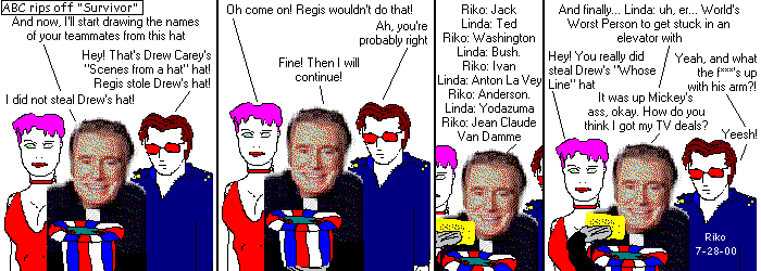 80's A. G. Ent activism adverts Aegir Aflac Al Gore Alan Rickman aliens alternate universe Anderson Angry Birds anime Anton La Vey Apollo Ares asplode Bad Andy Batman BDSM Billy blood blood hoses Bob Ross bodily fluids books bootleg brain brains Buffy butts cancellation candy cannibalism Captain  Riko Caruso Cheers Cheney Chi-Potle Chick-Fil-A Chris Dodd Christian Bale CIA cleanse the city Colin Firth comics Community computers conspiracy controversy costume costumes Craig Ferguson crash creepy stories crime Cthulhu customer service cute nonhuman dad jokes Dark Pantheon death Death Note Debug Demoncloake detective Deus Ex DGK dimensions dinosaurs Dispy Dogma Donald Trump doom doppelganger Dora Kent Dr. Jansen Dr. Who dreams Droid drugs Dubya eco El Rico de Nion elf engineering England eye carumba! eye lasers fan fiction farts FIFI filler Finland fire firefly flash forward food foot freaks French Maid Drone Friday the 13th fundies funky science funny hat furries Game of Thrones game show gay rights gearing up ghost gimp ginormous stuff Giorgio Tsoukalos Gllllyxxngragcht goat gods goth gross Gulliani guns hair hand to hand Hannibal hat haunted Hayden Panettiere HD 10180 heads Hellstar Remina Heroes Hitman holidays home base Hostess fruit pies hypertime injury internet iPad Ivan Commienov Jack Jack Chick Jim Cramer John Green John Lennon Jugularnaut Junji Ito Katy Perry kersplat Kevin Bacon Kraken lazy Lego lesbians Lincoln Lind-B Linda Lite Warriors lizard LJ Loki Lords of Acid Louis C.K. Louise Fletcher Lucinda mad science Madonna magic magic weapon manga Marvel Mass Effect Mass Effect 3 ending Mayan Apocalypse Megatron melded horrors memes meta Metallica Miley Cyrus milk MIP mistaken identity MIT monster monsters Morgan Freeman MOTU movies Mr. T Muppets music names nerdfighters New Years nightmare fuel ninja Nixon Nocifer-Auto Norway NSFW nudity Nurse Rached Odin olde fashioned other webcomics overreaction parody Pat Buchanon Patrick Stewart pervy planets Pluto politics pollution pop culture porn site Portal powers pranks property damage protest psychology public relations puke pursuit raccoon Ragnarok Ralph Nader rapture Ratchet re-entry reality show Red Lobster regent Regis religion Richard Marx Rifts Riko Riko's a good friend Riko rampage Rikonia robot rollin' coal roomba Ross Faeon royals RPGs RSS Feeder Sally Sandman Santa Scanners science Seapy Sesame Street severed head ShamWow sharks Sheila Sherlock shinigami Shortpacked Siren Siri sitcom Sky-Lynx Skyrim Smokey the Bear social media SOPA space Spider-Man sports squish Star Trek Star Wars Stargate starship superboy prime Superman Supernatural swords Talent Show talk show tech Ted teleport The Americans The Following the Lemonade Kid the Rock theft Theo thinkgeek Thor time travel toilet topical transformer Transformers trap travel Tron tropes TV U-Verse underwear Unicron urine utility suits vampire Van Damme Van Helsing video games violence voice actor vuvezela Washington Wonder Woman woodchipper X-Men Yodazuna Zachary Quinto Zeus zombie