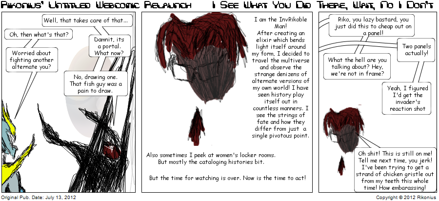 80's A. G. Ent activism adverts Aegir Aflac Al Gore Alan Rickman aliens alternate universe Anderson Angry Birds anime Anton La Vey Apollo Ares asplode Bad Andy Batman BDSM Billy blood blood hoses Bob Ross bodily fluids books bootleg brain brains Buffy butts cancellation candy cannibalism Captain  Riko Caruso Cheers Cheney Chi-Potle Chick-Fil-A Chris Dodd Christian Bale CIA cleanse the city Colin Firth comics Community computers conspiracy controversy costume costumes Craig Ferguson crash creepy stories crime Cthulhu customer service cute nonhuman dad jokes Dark Pantheon death Death Note Debug Demoncloake detective Deus Ex DGK dimensions dinosaurs Dispy Dogma Donald Trump doom doppelganger Dora Kent Dr. Jansen Dr. Who dreams Droid drugs Dubya eco El Rico de Nion elf engineering England eye carumba! eye lasers fan fiction farts FIFI filler Finland fire firefly flash forward food foot freaks French Maid Drone Friday the 13th fundies funky science funny hat furries Game of Thrones game show gay rights gearing up ghost gimp ginormous stuff Giorgio Tsoukalos Gllllyxxngragcht goat gods goth gross Gulliani guns hair hand to hand Hannibal hat haunted Hayden Panettiere HD 10180 heads Hellstar Remina Heroes Hitman holidays home base Hostess fruit pies hypertime injury internet iPad Ivan Commienov Jack Jack Chick Jim Cramer John Green John Lennon Jugularnaut Junji Ito Katy Perry kersplat Kevin Bacon Kraken lazy Lego lesbians Lincoln Lind-B Linda Lite Warriors lizard LJ Loki Lords of Acid Louis C.K. Louise Fletcher Lucinda mad science Madonna magic magic weapon manga Marvel Mass Effect Mass Effect 3 ending Mayan Apocalypse Megatron melded horrors memes meta Metallica Miley Cyrus milk MIP mistaken identity MIT monster monsters Morgan Freeman MOTU movies Mr. T Muppets music names nerdfighters New Years nightmare fuel ninja Nixon Nocifer-Auto Norway NSFW nudity Nurse Rached Odin olde fashioned other webcomics overreaction parody Pat Buchanon Patrick Stewart pervy planets Pluto politics pollution pop culture porn site Portal powers pranks property damage protest psychology public relations puke pursuit raccoon Ragnarok Ralph Nader rapture Ratchet re-entry reality show Red Lobster regent Regis religion Richard Marx Rifts Riko Riko's a good friend Riko rampage Rikonia robot rollin' coal roomba Ross Faeon royals RPGs RSS Feeder Sally Sandman Santa Scanners science Seapy Sesame Street severed head ShamWow sharks Sheila Sherlock shinigami Shortpacked Siren Siri sitcom Sky-Lynx Skyrim Smokey the Bear social media SOPA space Spider-Man sports squish Star Trek Star Wars Stargate starship superboy prime Superman Supernatural swords Talent Show talk show tech Ted teleport The Americans The Following the Lemonade Kid the Rock theft Theo thinkgeek Thor time travel toilet topical transformer Transformers trap travel Tron tropes TV U-Verse underwear Unicron urine utility suits vampire Van Damme Van Helsing video games violence voice actor vuvezela Washington Wonder Woman woodchipper X-Men Yodazuna Zachary Quinto Zeus zombie