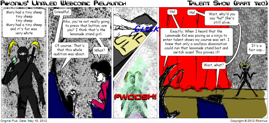 Tags: costumeLucindamagicninjaoverreactionTalent Showthe Lemonade Kid