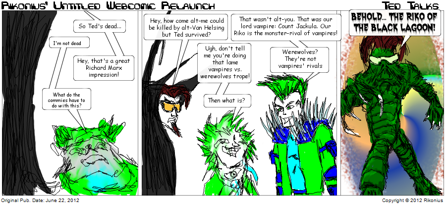 Tags: deathdoppelgangerEl Rico de Nioneye lasersmistaken identityRiko's a good friendrobotTedtransformervampireVan Helsing