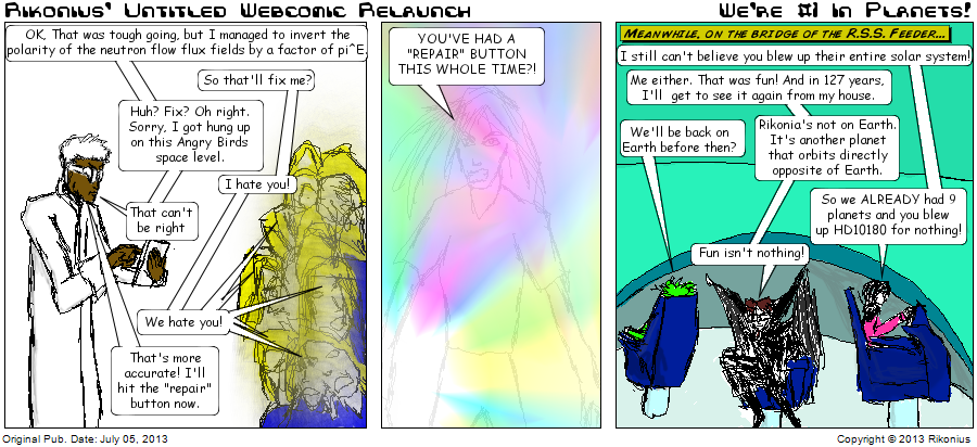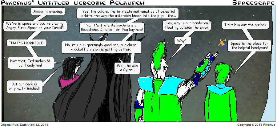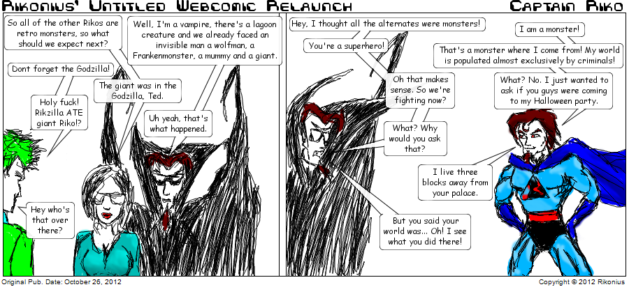 80's A. G. Ent activism adverts Aegir Aflac Al Gore Alan Rickman aliens alternate universe Anderson Angry Birds anime Anton La Vey Apollo Ares asplode Bad Andy Batman BDSM Billy blood blood hoses Bob Ross bodily fluids books bootleg brain brains Buffy butts cancellation candy cannibalism Captain  Riko Caruso Cheers Cheney Chi-Potle Chick-Fil-A Chris Dodd Christian Bale CIA cleanse the city Colin Firth comics Community computers conspiracy controversy costume costumes Craig Ferguson crash creepy stories crime Cthulhu customer service cute nonhuman dad jokes Dark Pantheon death Death Note Debug Demoncloake detective Deus Ex DGK dimensions dinosaurs Dispy Dogma Donald Trump doom doppelganger Dora Kent Dr. Jansen Dr. Who dreams Droid drugs Dubya eco El Rico de Nion elf engineering England eye carumba! eye lasers fan fiction farts FIFI filler Finland fire firefly flash forward food foot freaks French Maid Drone Friday the 13th fundies funky science funny hat furries Game of Thrones game show gay rights gearing up ghost gimp ginormous stuff Giorgio Tsoukalos Gllllyxxngragcht goat gods goth gross Gulliani guns hair hand to hand Hannibal hat haunted Hayden Panettiere HD 10180 heads Hellstar Remina Heroes Hitman holidays home base Hostess fruit pies hypertime injury internet iPad Ivan Commienov Jack Jack Chick Jim Cramer John Green John Lennon Jugularnaut Junji Ito Katy Perry kersplat Kevin Bacon Kraken lazy Lego lesbians Lincoln Lind-B Linda Lite Warriors lizard LJ Loki Lords of Acid Louis C.K. Louise Fletcher Lucinda mad science Madonna magic magic weapon manga Marvel Mass Effect Mass Effect 3 ending Mayan Apocalypse Megatron melded horrors memes meta Metallica Miley Cyrus milk MIP mistaken identity MIT monster monsters Morgan Freeman MOTU movies Mr. T Muppets music names nerdfighters New Years nightmare fuel ninja Nixon Nocifer-Auto Norway NSFW nudity Nurse Rached Odin olde fashioned other webcomics overreaction parody Pat Buchanon Patrick Stewart pervy planets Pluto politics pollution pop culture porn site Portal powers pranks property damage protest psychology public relations puke pursuit raccoon Ragnarok Ralph Nader rapture Ratchet re-entry reality show Red Lobster regent Regis religion Richard Marx Rifts Riko Riko's a good friend Riko rampage Rikonia robot rollin' coal roomba Ross Faeon royals RPGs RSS Feeder Sally Sandman Santa Scanners science Seapy Sesame Street severed head ShamWow sharks Sheila Sherlock shinigami Shortpacked Siren Siri sitcom Sky-Lynx Skyrim Smokey the Bear social media SOPA space Spider-Man sports squish Star Trek Star Wars Stargate starship superboy prime Superman Supernatural swords Talent Show talk show tech Ted teleport The Americans The Following the Lemonade Kid the Rock theft Theo thinkgeek Thor time travel toilet topical transformer Transformers trap travel Tron tropes TV U-Verse underwear Unicron urine utility suits vampire Van Damme Van Helsing video games violence voice actor vuvezela Washington Wonder Woman woodchipper X-Men Yodazuna Zachary Quinto Zeus zombie