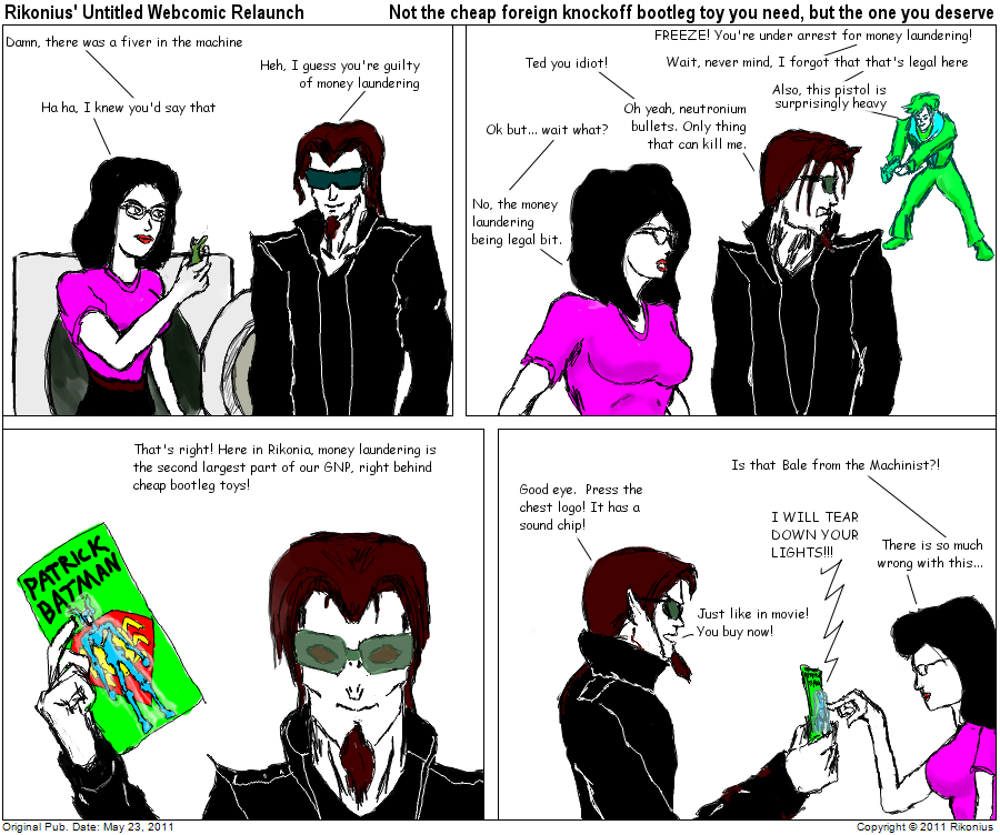 80's A. G. Ent activism adverts Aegir Aflac Al Gore Alan Rickman aliens alternate universe Anderson Angry Birds anime Anton La Vey Apollo Ares asplode Bad Andy Batman BDSM Billy blood blood hoses Bob Ross bodily fluids books bootleg brain brains Buffy butts cancellation candy cannibalism Captain  Riko Caruso Cheers Cheney Chi-Potle Chick-Fil-A Chris Dodd Christian Bale CIA cleanse the city Colin Firth comics Community computers conspiracy controversy costume costumes Craig Ferguson crash creepy stories crime Cthulhu customer service cute nonhuman dad jokes Dark Pantheon death Death Note Debug Demoncloake detective Deus Ex DGK dimensions dinosaurs Dispy Dogma Donald Trump doom doppelganger Dora Kent Dr. Jansen Dr. Who dreams Droid drugs Dubya eco El Rico de Nion elf engineering England eye carumba! eye lasers fan fiction farts FIFI filler Finland fire firefly flash forward food foot freaks French Maid Drone Friday the 13th fundies funky science funny hat furries Game of Thrones game show gay rights gearing up ghost gimp ginormous stuff Giorgio Tsoukalos Gllllyxxngragcht goat gods goth gross Gulliani guns hair hand to hand Hannibal hat haunted Hayden Panettiere HD 10180 heads Hellstar Remina Heroes Hitman holidays home base Hostess fruit pies hypertime injury internet iPad Ivan Commienov Jack Jack Chick Jim Cramer John Green John Lennon Jugularnaut Junji Ito Katy Perry kersplat Kevin Bacon Kraken lazy Lego lesbians Lincoln Lind-B Linda Lite Warriors lizard LJ Loki Lords of Acid Louis C.K. Louise Fletcher Lucinda mad science Madonna magic magic weapon manga Marvel Mass Effect Mass Effect 3 ending Mayan Apocalypse Megatron melded horrors memes meta Metallica Miley Cyrus milk MIP mistaken identity MIT monster monsters Morgan Freeman MOTU movies Mr. T Muppets music names nerdfighters New Years nightmare fuel ninja Nixon Nocifer-Auto Norway NSFW nudity Nurse Rached Odin olde fashioned other webcomics overreaction parody Pat Buchanon Patrick Stewart pervy planets Pluto politics pollution pop culture porn site Portal powers pranks property damage protest psychology public relations puke pursuit raccoon Ragnarok Ralph Nader rapture Ratchet re-entry reality show Red Lobster regent Regis religion Richard Marx Rifts Riko Riko's a good friend Riko rampage Rikonia robot rollin' coal roomba Ross Faeon royals RPGs RSS Feeder Sally Sandman Santa Scanners science Seapy Sesame Street severed head ShamWow sharks Sheila Sherlock shinigami Shortpacked Siren Siri sitcom Sky-Lynx Skyrim Smokey the Bear social media SOPA space Spider-Man sports squish Star Trek Star Wars Stargate starship superboy prime Superman Supernatural swords Talent Show talk show tech Ted teleport The Americans The Following the Lemonade Kid the Rock theft Theo thinkgeek Thor time travel toilet topical transformer Transformers trap travel Tron tropes TV U-Verse underwear Unicron urine utility suits vampire Van Damme Van Helsing video games violence voice actor vuvezela Washington Wonder Woman woodchipper X-Men Yodazuna Zachary Quinto Zeus zombie