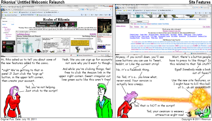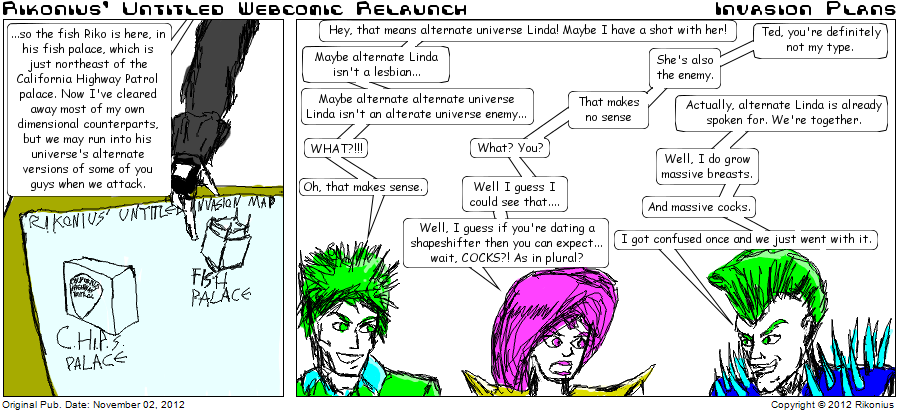 80's A. G. Ent activism adverts Aegir Aflac Al Gore Alan Rickman aliens alternate universe Anderson Angry Birds anime Anton La Vey Apollo Ares asplode Bad Andy Batman BDSM Billy blood blood hoses Bob Ross bodily fluids books bootleg brain brains Buffy butts cancellation candy cannibalism Captain  Riko Caruso Cheers Cheney Chi-Potle Chick-Fil-A Chris Dodd Christian Bale CIA cleanse the city Colin Firth comics Community computers conspiracy controversy costume costumes Craig Ferguson crash creepy stories crime Cthulhu customer service cute nonhuman dad jokes Dark Pantheon death Death Note Debug Demoncloake detective Deus Ex DGK dimensions dinosaurs Dispy Dogma Donald Trump doom doppelganger Dora Kent Dr. Jansen Dr. Who dreams Droid drugs Dubya eco El Rico de Nion elf engineering England eye carumba! eye lasers fan fiction farts FIFI filler Finland fire firefly flash forward food foot freaks French Maid Drone Friday the 13th fundies funky science funny hat furries Game of Thrones game show gay rights gearing up ghost gimp ginormous stuff Giorgio Tsoukalos Gllllyxxngragcht goat gods goth gross Gulliani guns hair hand to hand Hannibal hat haunted Hayden Panettiere HD 10180 heads Hellstar Remina Heroes Hitman holidays home base Hostess fruit pies hypertime injury internet iPad Ivan Commienov Jack Jack Chick Jim Cramer John Green John Lennon Jugularnaut Junji Ito Katy Perry kersplat Kevin Bacon Kraken lazy Lego lesbians Lincoln Lind-B Linda Lite Warriors lizard LJ Loki Lords of Acid Louis C.K. Louise Fletcher Lucinda mad science Madonna magic magic weapon manga Marvel Mass Effect Mass Effect 3 ending Mayan Apocalypse Megatron melded horrors memes meta Metallica Miley Cyrus milk MIP mistaken identity MIT monster monsters Morgan Freeman MOTU movies Mr. T Muppets music names nerdfighters New Years nightmare fuel ninja Nixon Nocifer-Auto Norway NSFW nudity Nurse Rached Odin olde fashioned other webcomics overreaction parody Pat Buchanon Patrick Stewart pervy planets Pluto politics pollution pop culture porn site Portal powers pranks property damage protest psychology public relations puke pursuit raccoon Ragnarok Ralph Nader rapture Ratchet re-entry reality show Red Lobster regent Regis religion Richard Marx Rifts Riko Riko's a good friend Riko rampage Rikonia robot rollin' coal roomba Ross Faeon royals RPGs RSS Feeder Sally Sandman Santa Scanners science Seapy Sesame Street severed head ShamWow sharks Sheila Sherlock shinigami Shortpacked Siren Siri sitcom Sky-Lynx Skyrim Smokey the Bear social media SOPA space Spider-Man sports squish Star Trek Star Wars Stargate starship superboy prime Superman Supernatural swords Talent Show talk show tech Ted teleport The Americans The Following the Lemonade Kid the Rock theft Theo thinkgeek Thor time travel toilet topical transformer Transformers trap travel Tron tropes TV U-Verse underwear Unicron urine utility suits vampire Van Damme Van Helsing video games violence voice actor vuvezela Washington Wonder Woman woodchipper X-Men Yodazuna Zachary Quinto Zeus zombie